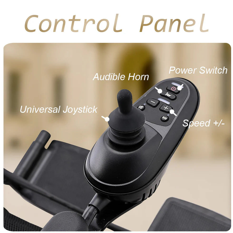 - Package Contents: Complete wheelchair, detachable lithium battery, charger, instruction manual, hardware, accessories