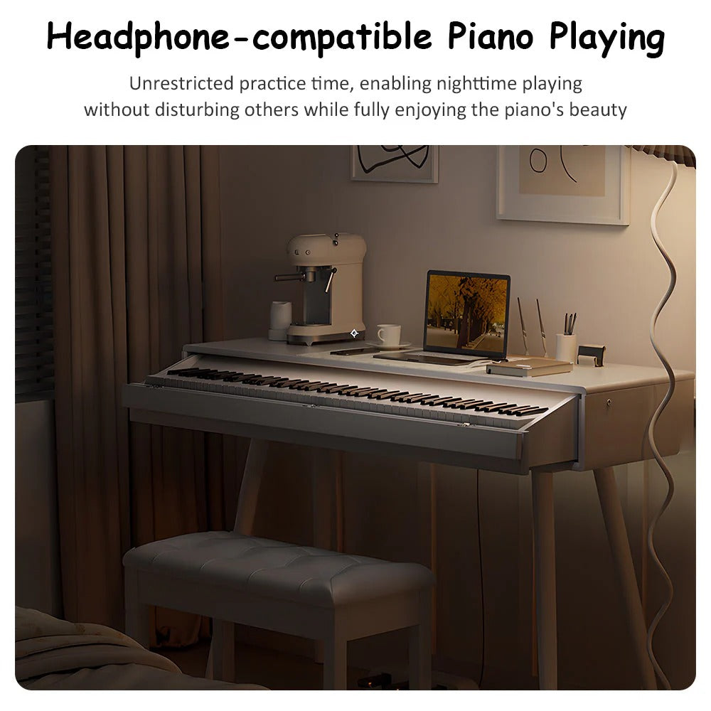 Discover the perfect harmony of music and design with the Betsy 2-in-1 Digital Piano Dress Table—an innovative space-saving solution that seamlessly transforms from an elegant dressing table into a fully functional 88-key weighted piano. Ideal for modern homes, compact apartments, teaching studios, or anyone who values both musical expression and sophisticated interior design, this versatile piece combines premium piano performance with practical furniture functionality.