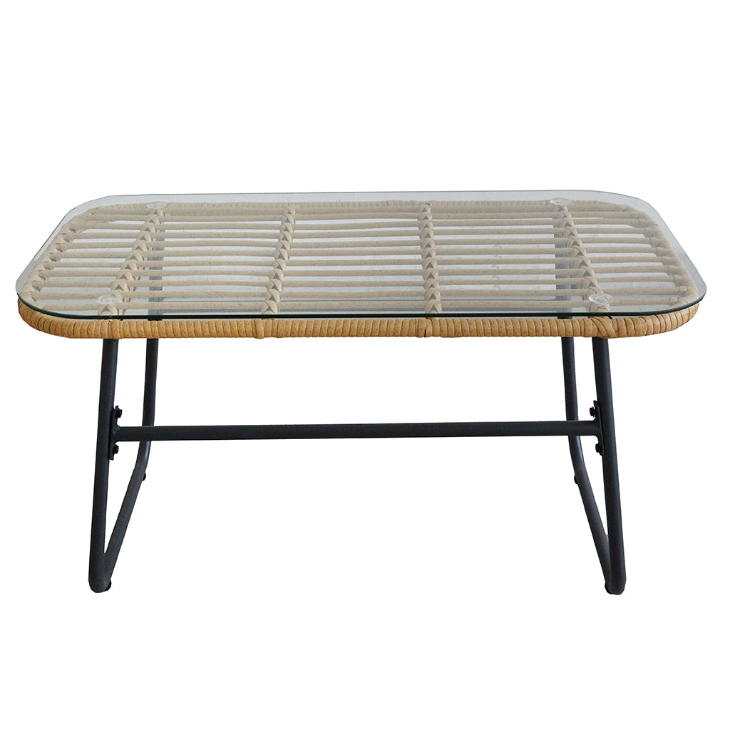 Steel frame, PE rattan, 5mm tempered glass, PP cotton cushions