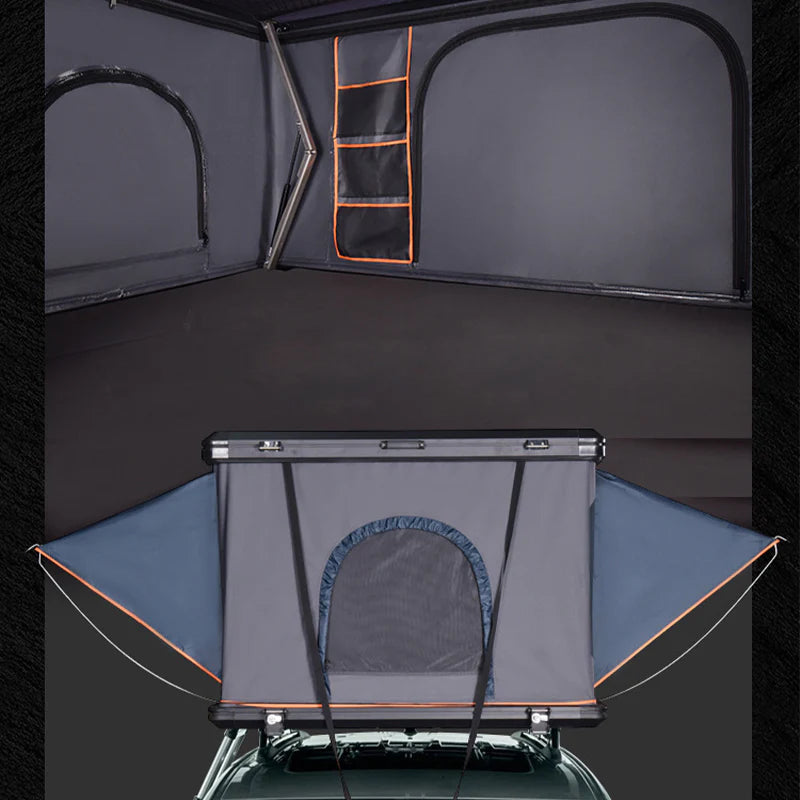 The Flip Roof Tent provides an elevated sleeping solution designed for SUV rooftops, off-road vehicles, and outdoor camping travel. Built for vehicle-mounted use, this rooftop tent combines a reinforced steel and aluminum support structure with weather-resistant fabric materials to support reliable overnight shelter during self-driving trips, off-road exploration, and long-distance travel. The tent frame features a 20# cold-rolled steel bracket with a plastic-sprayed rust-resistant surface, paired with aviation-grade aluminum alloy telescopic rods for stable support when properly installed.