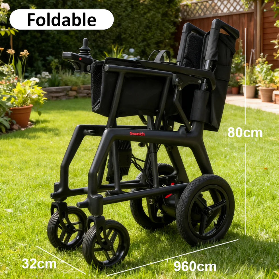 The Foldable 24V10Ah Electric Wheelchair represents the pinnacle of portable mobility engineering, combining airline-approved lightweight design with premium carbon fiber construction enabling unprecedented portability without sacrificing durability or performance. This revolutionary wheelchair weighs only 14.25kg net weight—making it the ultra-lightweight champion enabling single-person independent transport, air travel compatibility, and genuine mobility freedom impossible with traditional heavy wheelchairs. Engineered with advanced brushless motor technology (dual 24V/150W motors delivering responsive, efficient power), intelligent electromagnetic braking system, and cutting-edge 24V10Ah lithium battery technology enabling rapid 3-hour charging and practical 6-10km driving range per charge, this wheelchair prioritizes efficiency, convenience, and user independence. The distinctive 3-in-1 versatile design enables seamless transformation across multiple mobility scenarios—functioning as primary electric wheelchair, backup manual mobility solution, and flexible transportation platform—maximizing utility across diverse daily living scenarios without requiring separate equipment investments. Measuring 97.2×62.3×72.5cm unfolded with an exceptionally compact foldable profile reducing to 78×35×79.5cm package dimensions, this wheelchair accommodates users up to 120kg while maintaining extraordinary portability for vehicle trunks, aircraft cargo holds, and home storage without space constraints. The innovative magnesium alloy and carbon fiber construction provides premium materials engineering delivering optimal strength-to-weight ratio unavailable in traditional aluminum or steel frames. Premium comfort features include padded seat and supportive backrest, spacious 45×39×46cm seat dimensions, and 10mm cushion thickness ensuring comfort during extended use. Advanced maneuvering capability includes impressive 900mm minimum turning radius enabling tight navigation in confined spaces, doorways, and corridors where standard wheelchairs cannot operate efficiently. Maximum climbing angle of 6° and top speed of 6 km/h provide practical performance across standard residential and urban environments. The pioneering electromagnetic brake system ensures responsive, reliable stopping and prevents unwanted rolling during stationary periods. Perfect for frequent travelers, air commuters, active seniors requiring ultimate portability, users prioritizing lightweight convenience, space-conscious individuals, caregivers seeking manageable equipment, international mobility users, and anyone deserving the ultimate combination of extreme lightweight design with premium performance and genuine airline-approved travel capability.
