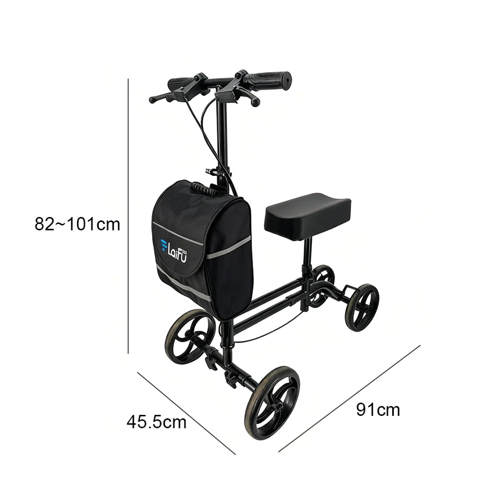 Foldable Knee Scooter Walker with Storage Bag – Adjustable Height, Stable Braking, Portable Mobility Aid