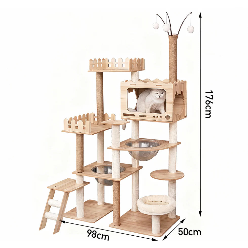 Ideal for: Indoor cats, multi-level climbing, enclosed resting spaces, scratching needs