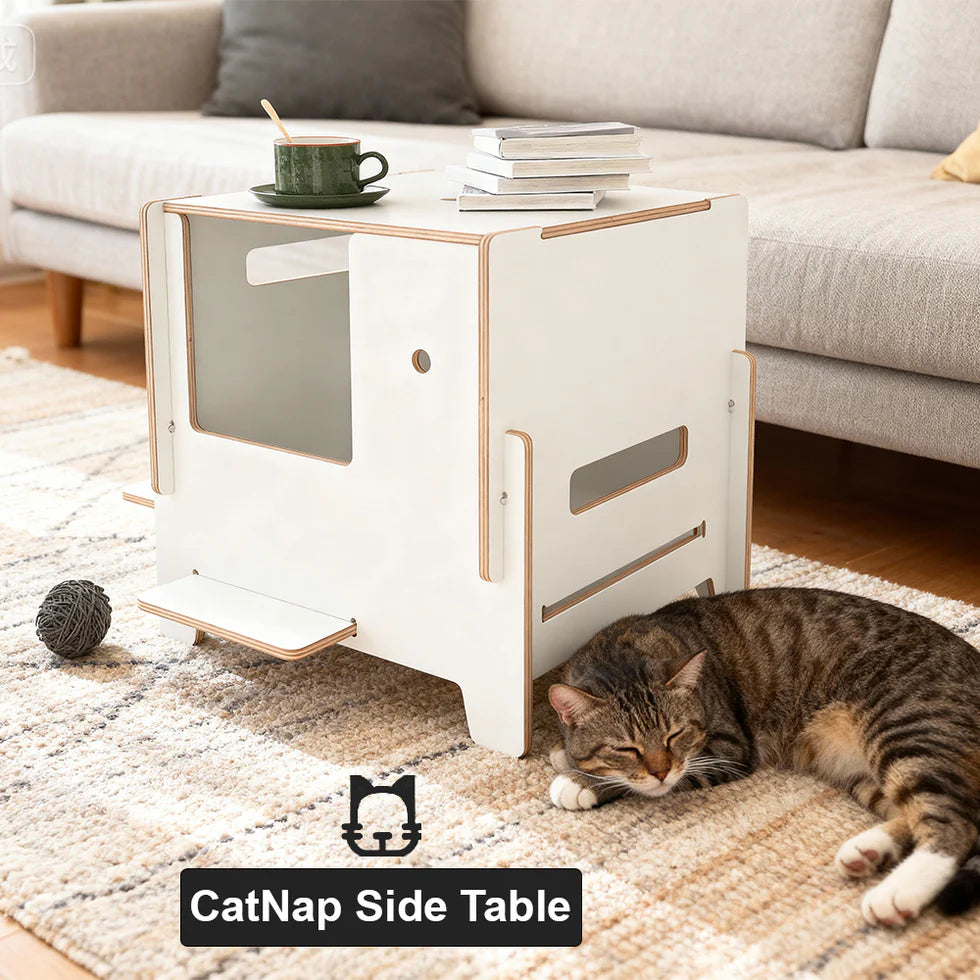 minimalist cat table, pet-friendly side table, cat nap nook furnit
