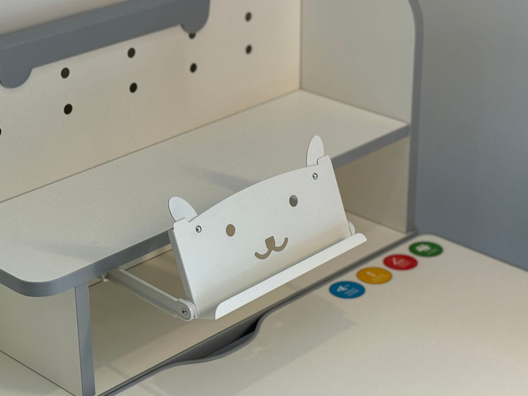 Thoughtful storage solutions — including a bookshelf, side compartments, hidden drawer, and built-in paper roll holder — help keep things tidy and within easy reach. The adorable cat and paw-print theme adds a fun touch that keeps kids engaged, while the sleek finish blends beautifully with any interior.