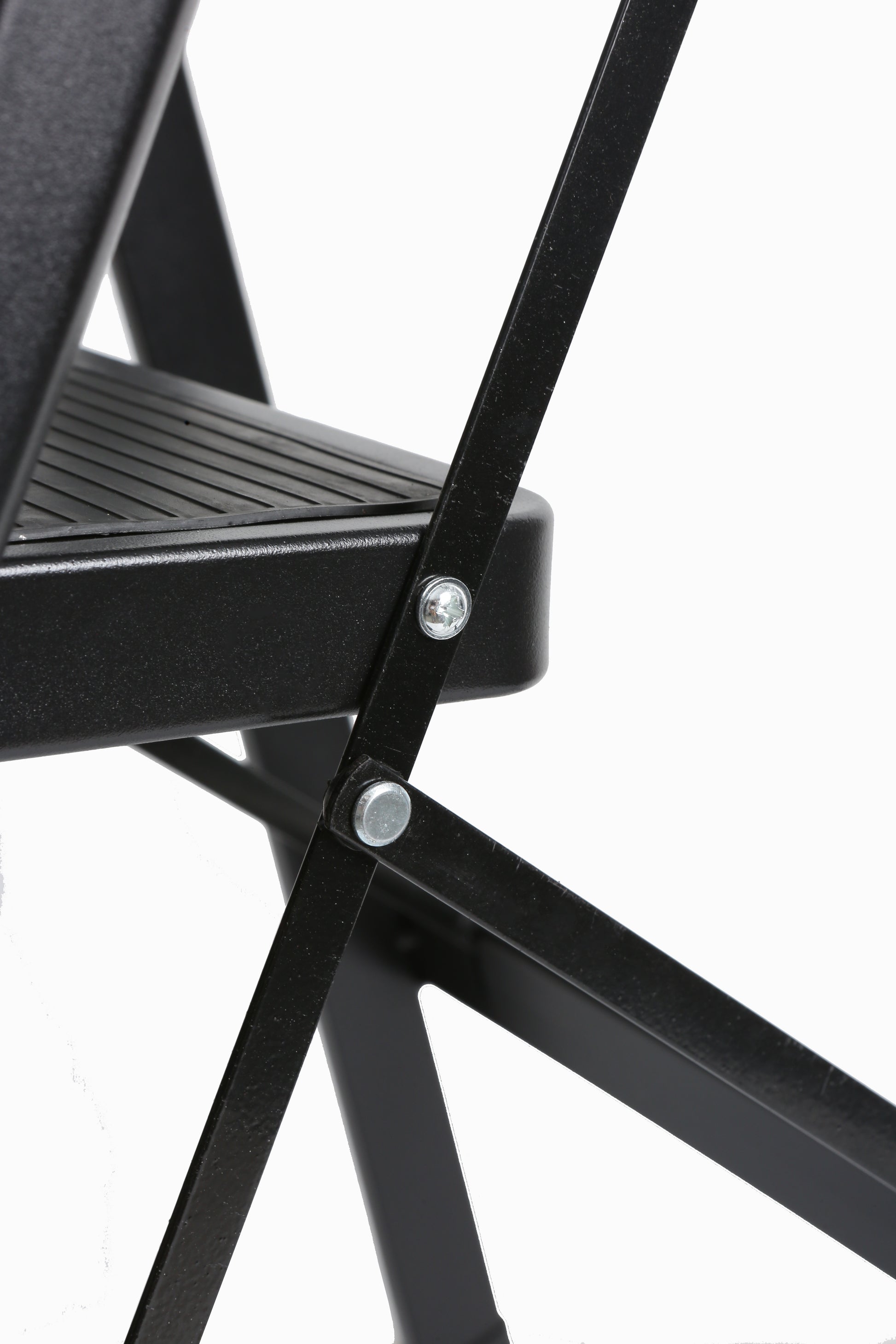 Crafted from heavy-duty metal, this ladder features wide textured steps with anti-slip surface grip, non-slip foot pads, and an ergonomic rubber-coated handle for added comfort and balance. Its foldable design makes it easy to store in cupboards, garages, or tight spaces — while the included accessories like a tool pouch and rubber grips make tasks even more convenient.