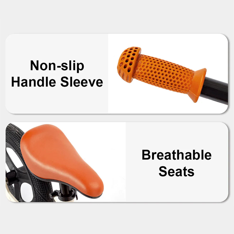 Unlike traditional tricycles that don't teach real balance, this balance bike enables children to develop natural balancing skills by using their feet to push and maintain equilibrium. The pedal-free design removes complexity, allowing focus on balance, steering, and confidence—essential skills for future pedal bikes.