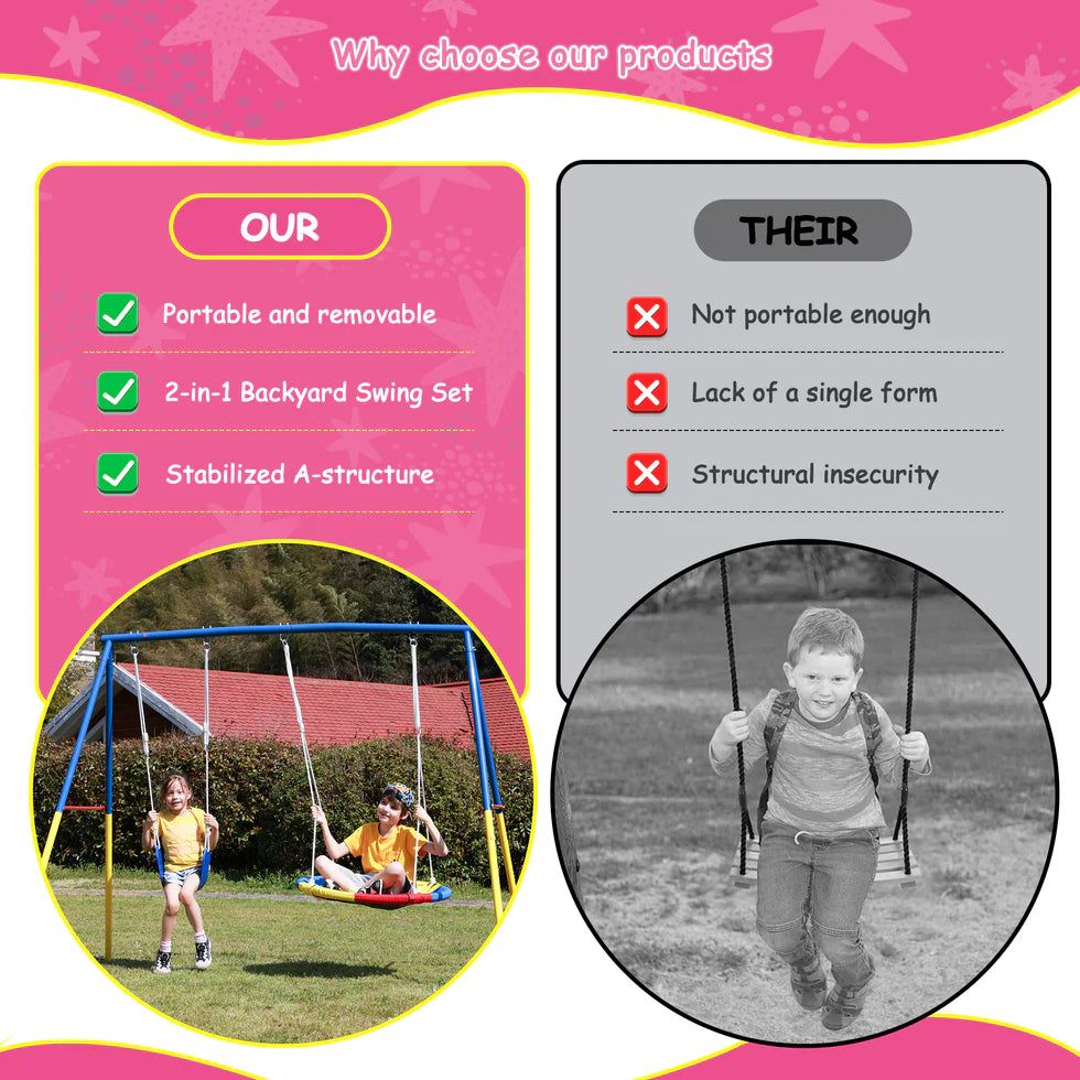 Swing Set for Backyard with Stand, Swing Heavy Duty Metal Outdoor