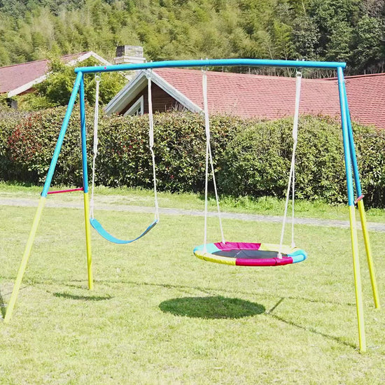 - Double Swings: 81cm saucer + 66.5cm traditional swing enable simultaneous fun for two users